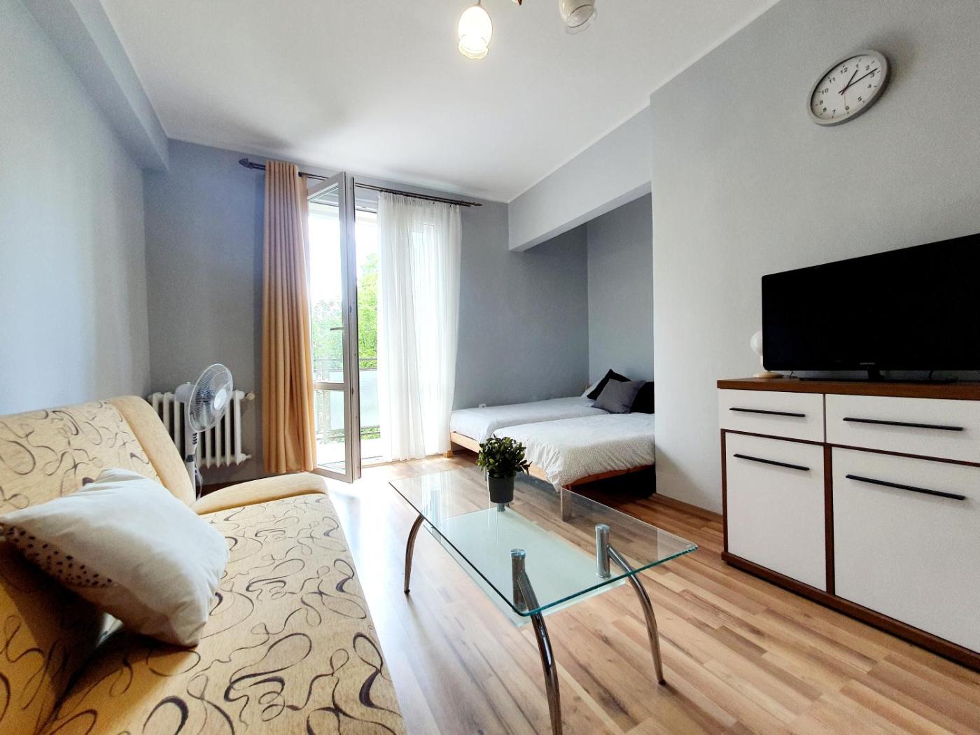 Studio. The studio features a washing machine and a dining area, as well as a private bathroom boasting a shower. The well-equipped kitchen has a stovetop, a refrigerator, kitchenware and an electric kettle. This studio features a wardrobe, heating and a flat-screen TV. The unit has 2 beds. Studio - 4 osobowy. Powierzchnia pokoju ok.: 25 mkw.