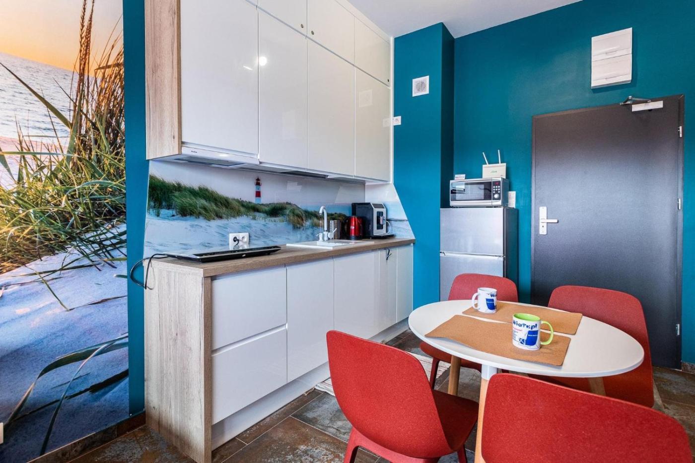 Studio. The studio features a washing machine, a private entrance, as well as a private bathroom boasting a walk-in shower and a hairdryer. The well-fitted kitchenette has a stovetop, a refrigerator, a dishwasher and kitchenware. Featuring a balcony, this studio also provides soundproof walls, a tea and coffee maker and a flat-screen TV. The unit has 3 beds. Studio - 4 osobowy. Powierzchnia pokoju ok.: 28 mkw.