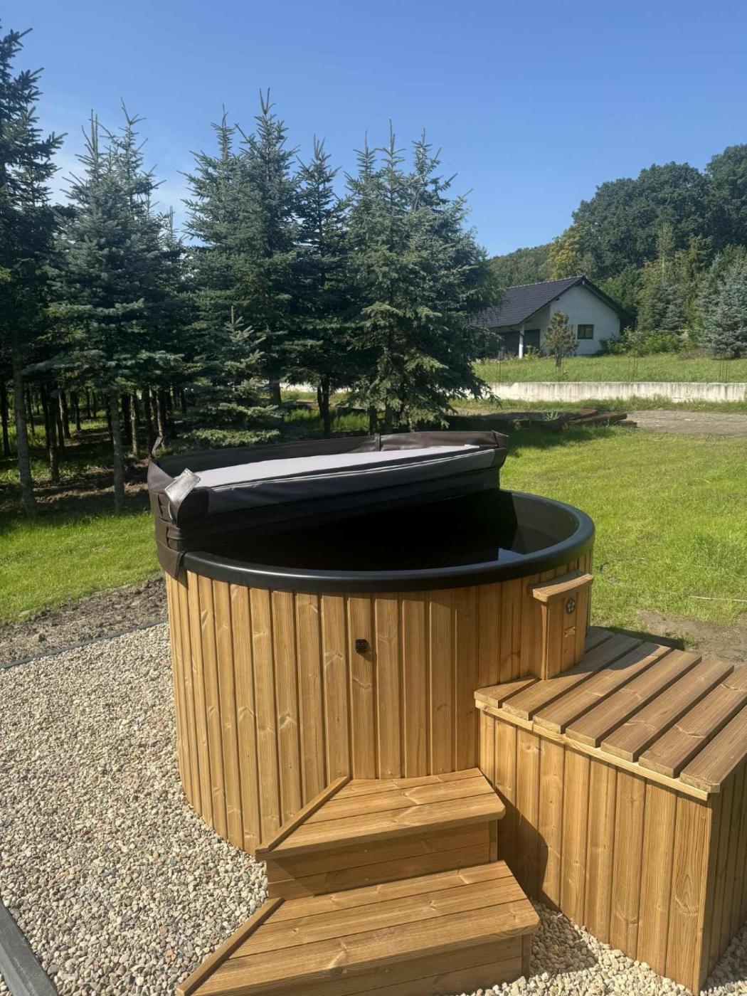 Dom z 2 sypialniami. This holiday homes standout feature is the hot tub. Boasting a private entrance, this air-conditioned holiday home includes 1 living room, 2 separate bedrooms and 1 bathroom with a bath or a shower and a hairdryer. Guests will find a stovetop, a refrigerator, a dishwasher and kitchenware in the kitchen. The holiday home also features a barbecue. Featuring a terrace with garden views, this holiday home also offers a washing machine and a flat-screen TV with streaming services. The unit has 4 beds. Dom wakacyjny - 6 osobowy. Powierzchnia pokoju ok.: 65 mkw.