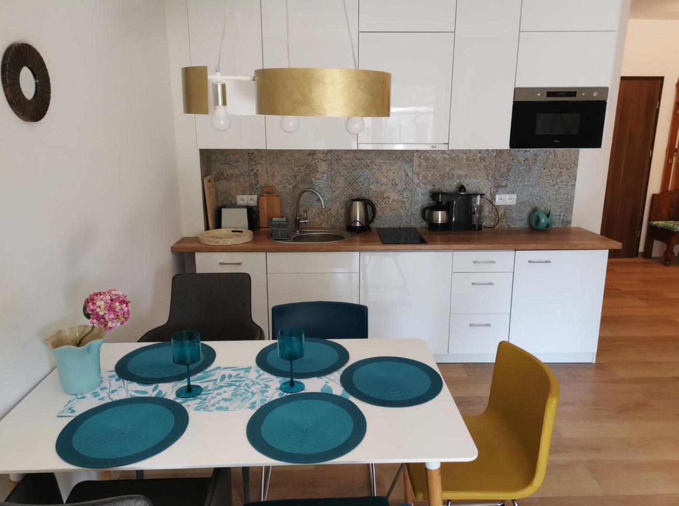 Apartament z tarasem. Featuring a private entrance, this apartment consists of 1 living room, 1 separate bedroom and 1 bathroom with a walk-in shower and a hairdryer. In the kitchen, guests will find a stovetop, a refrigerator, a dishwasher and kitchenware. Boasting a terrace with garden views, this apartment also provides a washing machine and a flat-screen TV with satellite channels. The unit offers 3 beds. Apartament - 5 osobowy. Powierzchnia pokoju ok.: 53 mkw.