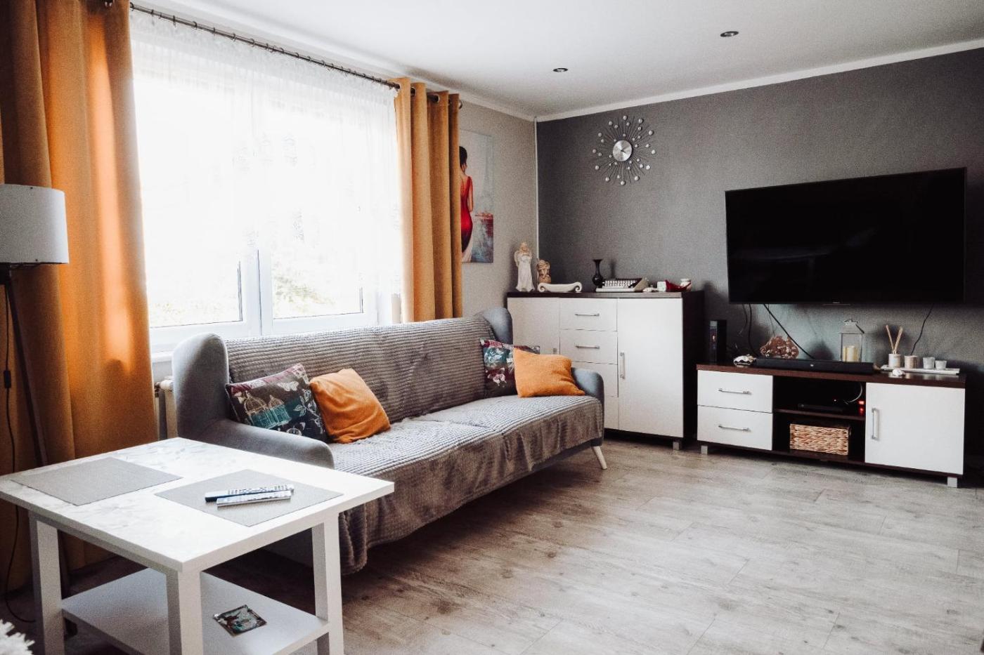 Dom z 2 sypialniami. The fireplace is a top feature of this holiday home. Guests will find a stovetop, a refrigerator, a dishwasher and kitchenware in the fully equipped kitchen. The holiday home also includes a barbecue. Boasting a terrace with garden views, this holiday home also features a washing machine and a flat-screen TV with satellite channels. The unit has 4 beds. Dom wakacyjny - 6 osobowy. Powierzchnia pokoju ok.: 90 mkw.