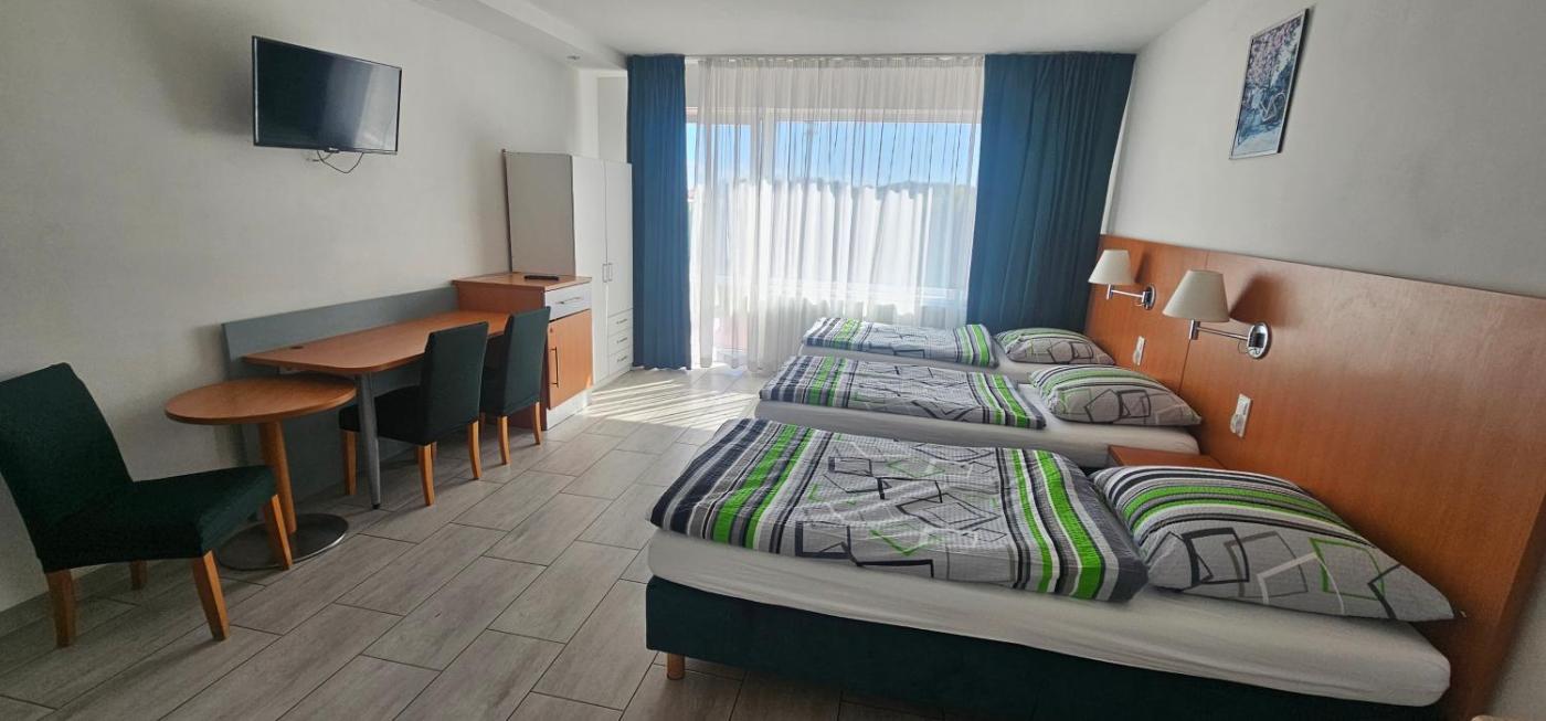 Pokój trzyosobowy z łazienką. Meals can be prepared in the well-fitted kitchenette, which comes with a stovetop, a refrigerator, kitchenware and an electric kettle. A seating area with a flat-screen TV, a desk, a terrace and a private bathroom are featured in this triple room. The unit offers 3 beds. Pokój Trzyosobowy - 3 osobowy. Powierzchnia pokoju ok.: 30 mkw. ;