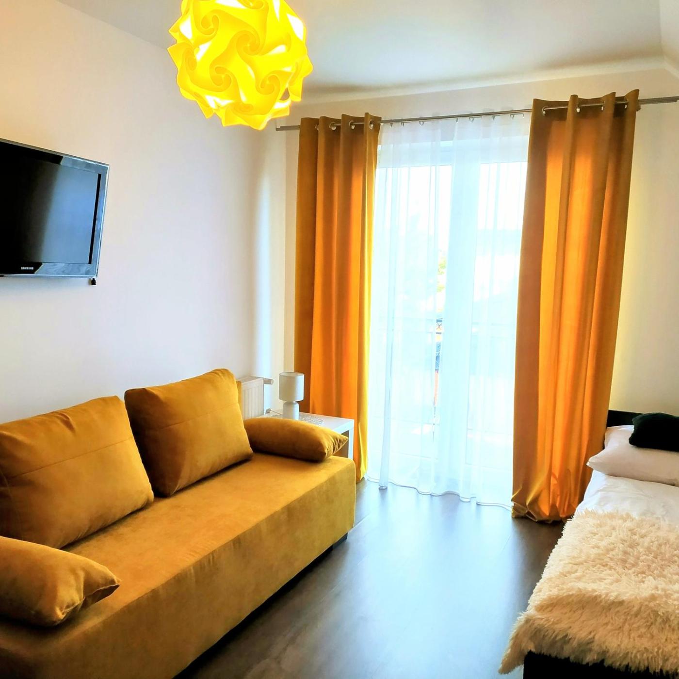 Pokój dwuosobowy. The double room provides heating, as well as a private bathroom featuring a shower. The double room offers a flat-screen TV, a wardrobe, an electric kettle, parquet floors as well as garden views. The unit offers 1 bed. Pokój Dwuosobowy - 2 osobowy. Powierzchnia pokoju ok.: 9 mkw. ;